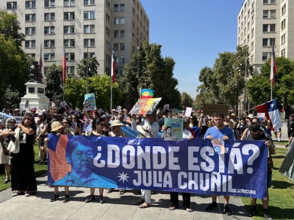 El 8 de noviembre de 2024, Julia salió con un hacha y su perro Cholito buscando animales perdidos. Tenía 72 años, era madre, abuela, presidenta de la Comunidad Putreguel, defensora del bosque nativo y de las tierras ancestrales. No volvió jamás. Hoy sabemos, por una escucha telefónica, que la quemaron. La quemaron como se borra un rastro, como se intenta borrar una verdad.